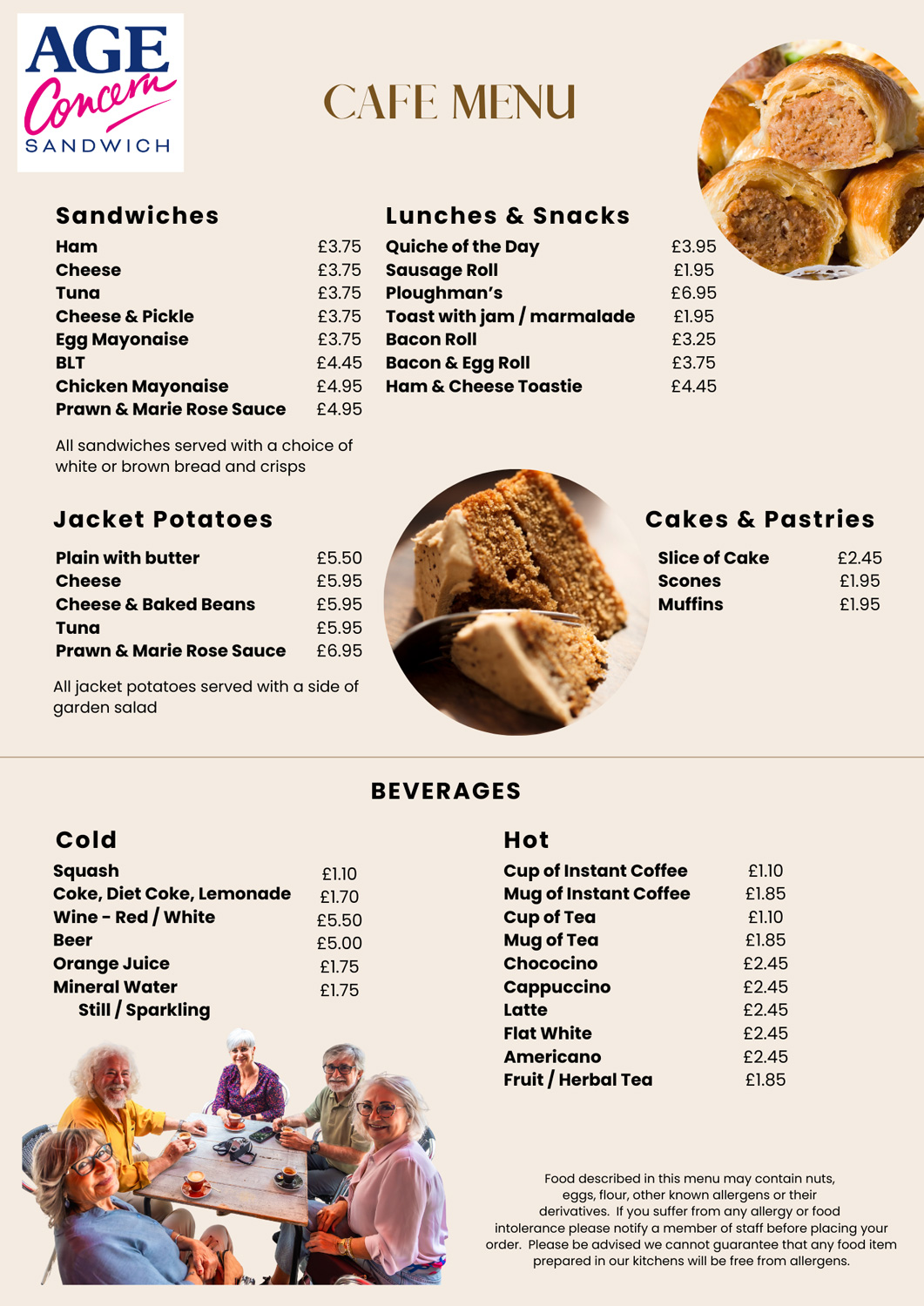 Everything is freshly made on site by our fabulous Age Concern Sandwich catering team, using quality ingredients and plenty of care — because good food should always come with a warm welcome.